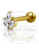 GOLD PVD SS316L ONE SIDE INTERNAL MICRO BARBELLS SET W.CUBIC ZIRCONIA (0.8mm)
