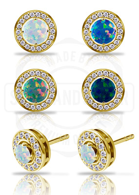 GOLD PVD 4MM EARSTUDS W. DETACHABLE PAVE SET HALO EAR JACKET