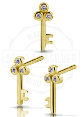 GOLD PVD KEY EARSTUDS SET W. CUBIC ZIRCONIA