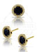 GOLD PVD BLACK 6MM AGATE EARSTUDS W. HALO PAVE FRAME