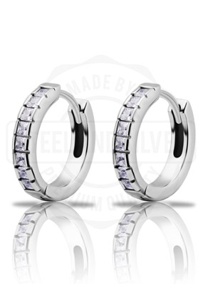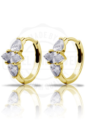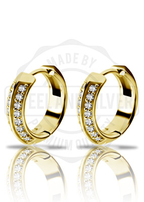 GOLD PVD SS316L EARHOOPS SET W. 2 ROWS CUBIC ZIRCONIA (PAIR)