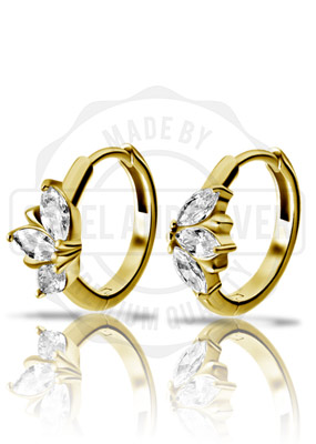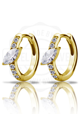 GOLD PVD SS316L EARHOOPS SET W. MARQUISE CUBIC ZIRCONIA (PAIR)