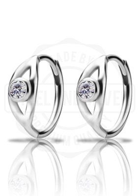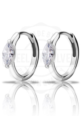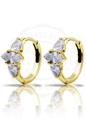 GOLD PVD SS316L EAR HOOPS SET W. MARQUISE CUBIC ZIRCONIA (BY PAIR)