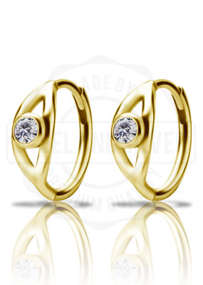 GOLD PVD SS316L EARHOOPS SET W. CUBIC ZIRCONIA (PAIR)