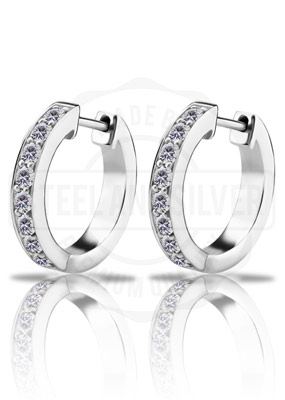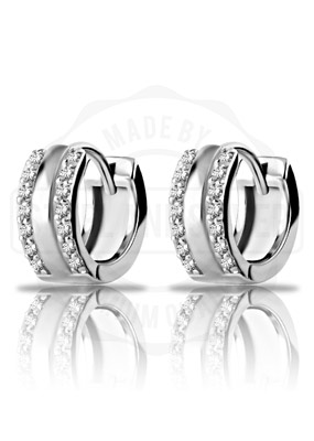 GOLD PVD SS316L EARHOOPS SET W. ROSE CUT CUBIC ZIRCONIA