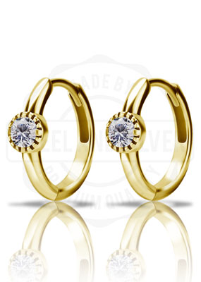 GOLD PVD SS316L EARHOOPS SET W. CUBIC ZIRCONIA 3MM