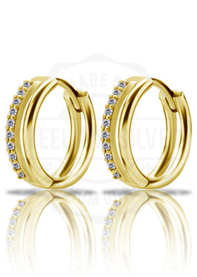 GOLD PVD SS316L EARHOOPS SET W. CUBIC ZIRCONIA