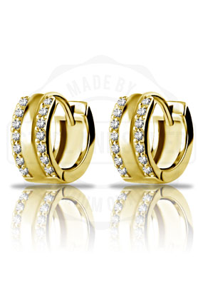 GOLD PVD HUGGIES HOOPS (10MM) W. 2 ROWS PAVE SET CUBIC ZIRCONIA
