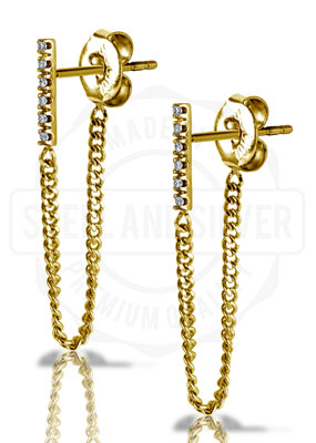 GOLD PVD SLEEK PAVE BAR WITH CHAIN JACKET