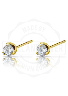 GOLD PVD SS316L EARSTUDS SET W. 4MM CUBIC ZIRCONIA