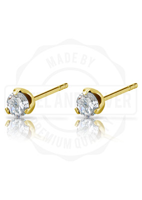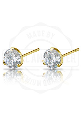 GOLD PVD SS316L EARSTUDS SET W. 6MM CUBIC ZIRCONIA