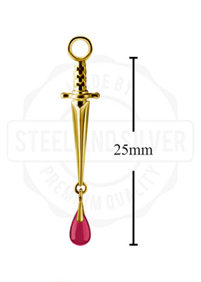 GOLD PVD CoCr NF DAGGER CHARMS SET W. LAB CREATED RUBY