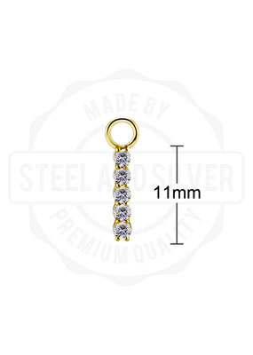 GOLD PVD CoCr NF BAR CHARMS FOR HINGED RINGS SET W. PREMIUM ZIRCONIA (5STONES)