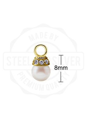 GOLD PVD CoCr NF CHARMS FOR HINGED RINGS SET W. PR. ZIRC. AND FRESHWATER PEARL