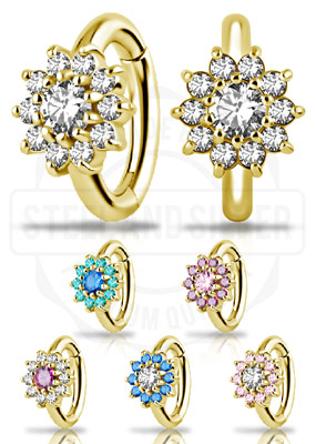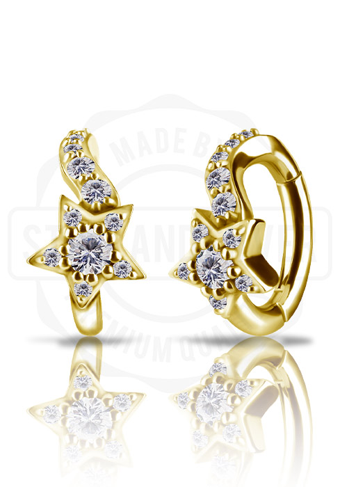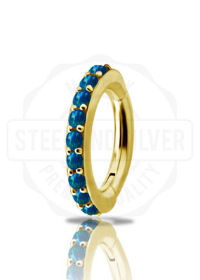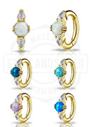 GOLD PVD CoCr NF OVAL BELLY CLICKER SET W. LAB CREATED OPAL
