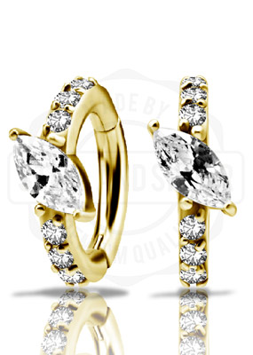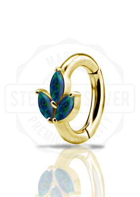 GOLD PVD CoCr NF OVAL BELLY CLICKER SET W. LAB CREATED OPAL