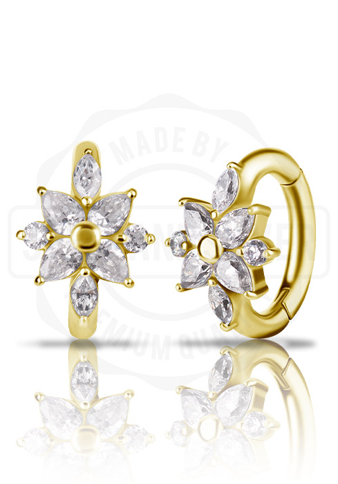 GOLD PVD CoCr NF OVAL BELLY CLICKER SET W. PREMIUM ZIRCONIA