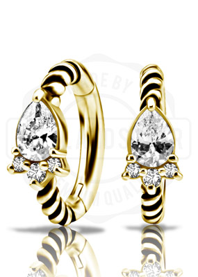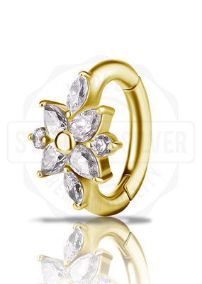 GOLD PVD CoCr NF OVAL 4 PETAL FLOWER BELLY CLICKER SET W.PREMIUM ZIRCONIA