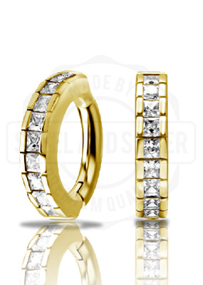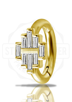 GOLD PVD CoCr NF OVAL BELLY CLICKER SET W.CUBIC ZIRCONIA