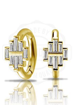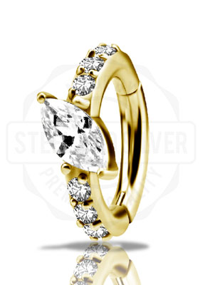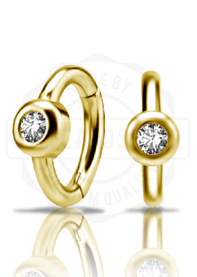 GOLD PVD CoCr NF OVAL BELLY CLICKER SET W.CUBIC ZIRCONIA