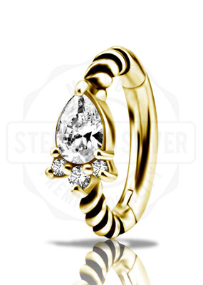 GOLD PVD CoCr NF OVAL BELLY CLICKER SET W.CUBIC ZIRCONIA