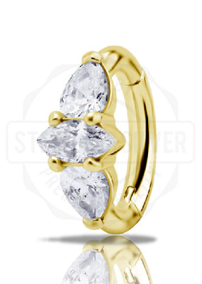 GOLD PVD CoCr NF OVAL BELLY CLICKER SET W.CUBIC ZIRCONIA