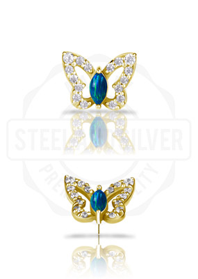 GOLD PVD CoCr NF THREADLESS BUTTERFLY ATT. SET W. LAB CREATED OPALS