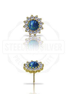 GOLD PVD CoCr NF THREADLESS ATTACHMENT SET W. LAB CREATED OPAL