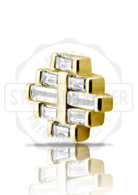 GOLD PVD SS316L MICRO ATTACHMENT ART DECO SET W.ZIRCONIA BAGUETTES