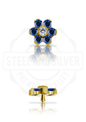 GOLD PVD TITANIUM MICRO FLOWER ATT. SET W. LAB CREATED GEMSTONE (4MM)