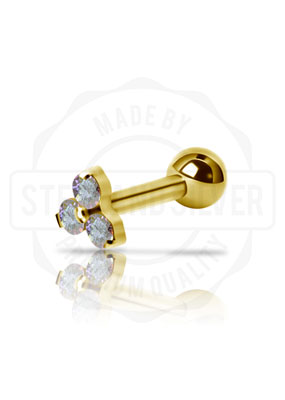 GOLD PVD TITANIUM INT. MICRO BARBELL W. 4MM PREMIUM ZIRCONIA TRINITY ATT.