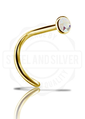 GOLD PVD TIT. CURVED NOSESTUD BEZEL SET W. PREMIUM ZIRCONIA