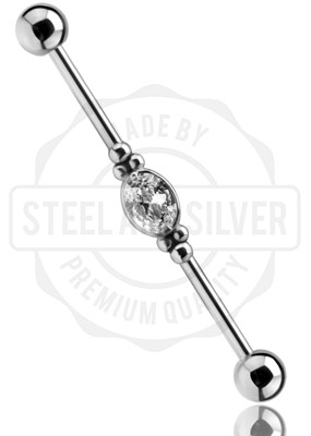 SS316L INDUSTRIAL BARBELLS SET W. OVAL CUBIC ZIRCONIA