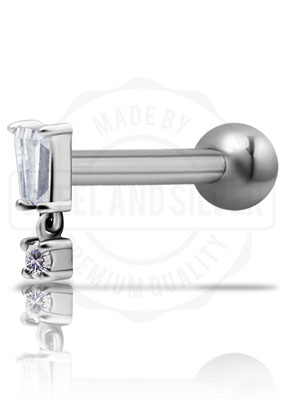 SS316L ONE SIDE INT. MICRO BARBELLS SET W. TAPER BAQUETTE CUBIC ZIRCONIA