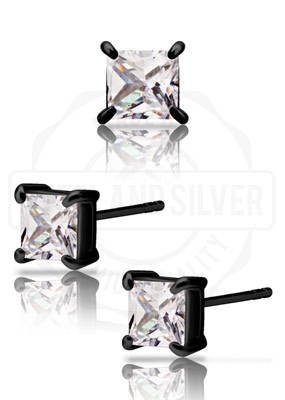 BLACK PVD EARSTUDS SET W. PRINCESS CUT PREMIUM ZIRCONIA (5X5MM)