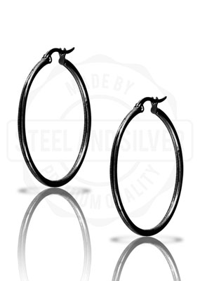 SS316L BLACK PVD ROUND HOOP EARRINGS (PAIR)