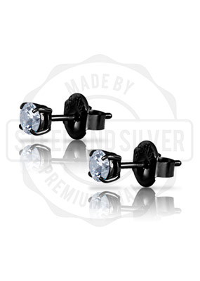 BLACK PVD EARSTUDS SET W. 4MM ROUND PREMIUM ZIRCONIA