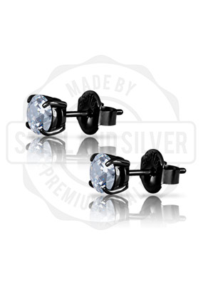BLACK PVD EARSTUDS SET W. 5MM ROUND PREMIUM ZIRCONIA