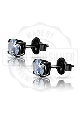 BLACK PVD EARSTUDS SET W. 6MM ROUND PREMIUM ZIRCONIA