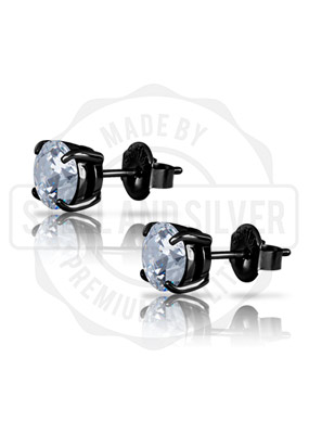 BLACK PVD EARSTUDS SET W. 8MM ROUND PREMIUM ZIRCONIA