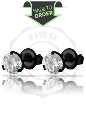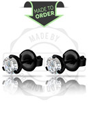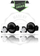 SS316L BLACK PVD EARSTUDS SET W. 6MM CUBIC ZIRCONIA