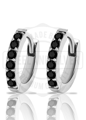 SS316L HUGGIE EAR HOOPS SET W. 1 ROW CUBIC ZIRCONIA (BY PAIR)
