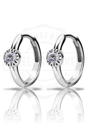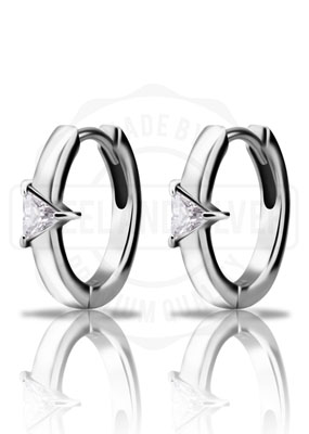 SS316L EAR HOOPS SET W. TRIANGLE CUBIC ZIRCONIA (BY PAIR)