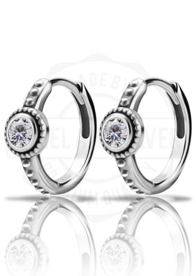 SS316L EAR HOOPS SET W. ROSECUT CUBIC ZIRCONIA (BY PAIR)
