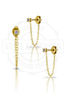 SS316L EARSTUDS SET W. 2MM ROUND PREMIUM ZIRCONIA (CHAIN 3.2CM)