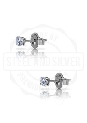 SS316L EARSTUDS SET W. 3MM ROUND PREMIUM ZIRCONIA