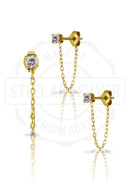 SS316L EARSTUDS SET W. 3MM ROUND PREMIUM ZIRCONIA (CHAIN 3.2CM)