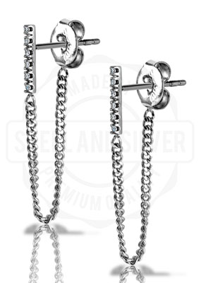 SS316L EARSTUDS SLEEK PAVE BAR WITH CHAIN JACKET
