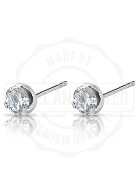 SS316L EARSTUDS SET W. 4MM ROUND CUBIC ZIRCONIA
