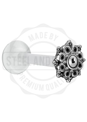 BIOPLAST® LABRET WITH STEEL CASTING ATTACHMENT (TRIBAL FLOWER)